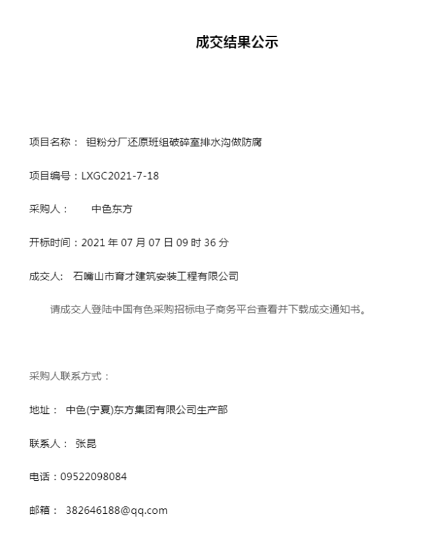 钽粉分厂还原班组破碎室排水沟做防腐入围公示