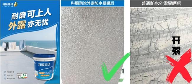 以“外露耐久”为核心,定义“一次就好”的新标准科顺防水始终秉持“一次防水,一次就好”的品牌承诺,致力于通过高耐久产品从根本上解决建筑渗漏隐患。科顺润涂R302外露型防水涂料的研发正是基于这一理念,专为屋面、阳台、露台等直接外露的苛刻环境而生,并且适用于混泥土、水泥、彩钢瓦、金属等不同基面。