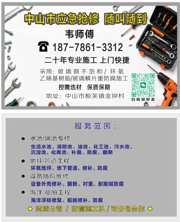 广东中山市专业防腐施工二十年,有活请联系我,需要应急的联系我,不管你是在广东还是哪里